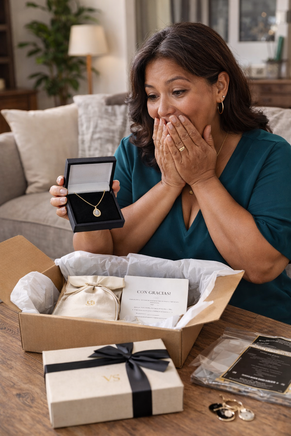 Incluye tarjeta con mensaje y caja de joyería GRATIS