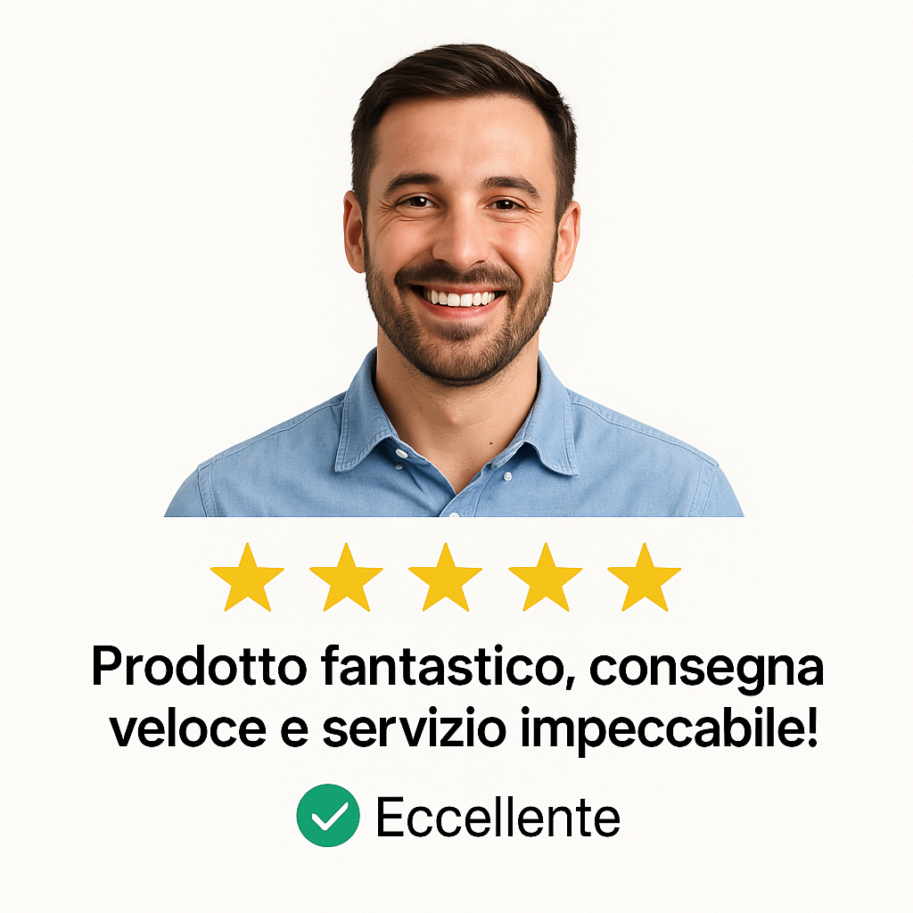 Il prodotto è arrivato nei tempi previsti, ben imballato e in perfette condizioni. La qualità è ottima e ha superato le mie aspettative. Lo consiglio senza dubbio Il prodotto è arrivato nei tempi previsti, ben imballato e in perfette condizioni. La qualità è ottima e ha superato le mie aspettative. Lo consiglio senza dubbio Il prodotto è arrivato nei tempi previsti, ben imballato e in perfette condizioni. La qualità è ottima e ha superato le mie aspettative. Lo consiglio senza dubbio