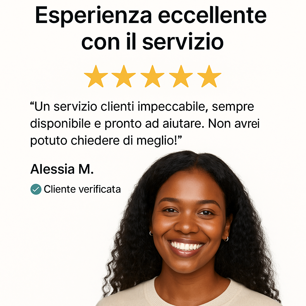 Servizio impeccabile, consegna puntuale e prodotto di qualità superiore. Sono davvero soddisfatta della mia scelta! Servizio impeccabile, consegna puntuale e prodotto di qualità superiore. Sono davvero soddisfatta della mia scelta! Servizio impeccabile, consegna puntuale e prodotto di qualità superiore. Sono davvero soddisfatta della mia scelta!