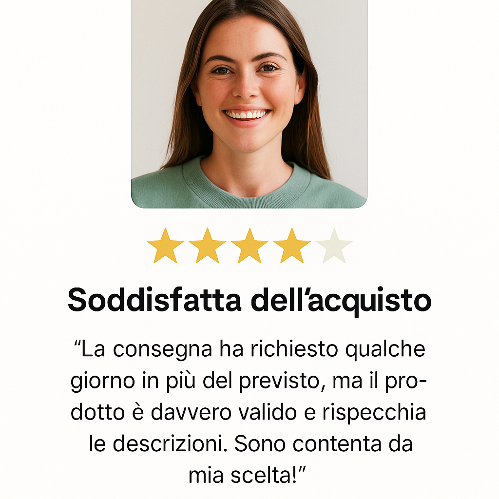 Servizio impeccabile, consegna puntuale e prodotto di qualità superiore. Sono davvero soddisfatta della mia scelta! Servizio impeccabile, consegna puntuale e prodotto di qualità superiore. Sono davvero soddisfatta della mia scelta! Servizio impeccabile, consegna puntuale e prodotto di qualità superiore. Sono davvero soddisfatta della mia scelta!